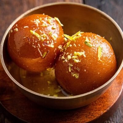 Fried milk-solid dumplings in sugar syrup.