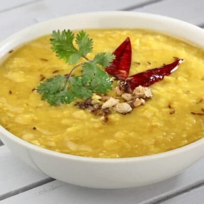 Lentil curry tempered with spices.